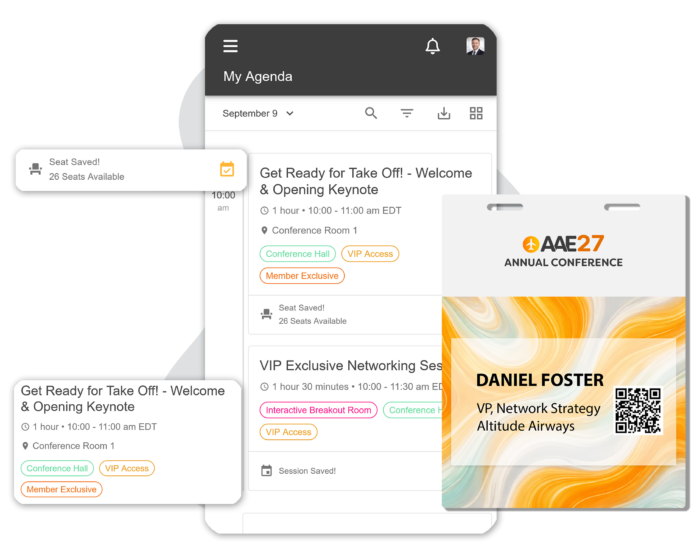 Fast event check-in, zero chaos. Then keep every attendee engaged, connected, and on track all day long.