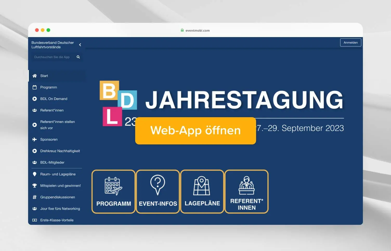 Buchen Sie Ihre persönliche Demo, um zu erfahren, wie die Event-App-Plattform von EventMobi Sie beim Erreichen Ihrer Ziele unterstützt – und Ihre Veranstaltung zu einem ganz besonderen Erlebnis macht.